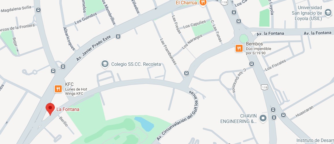 Av. Javier Prado 5250 int #54 (primer piso) "Centro Comercial La Fontana" Referencia: 5min del Jockey Plaza. 🚙 Espacios libres para estacionar.